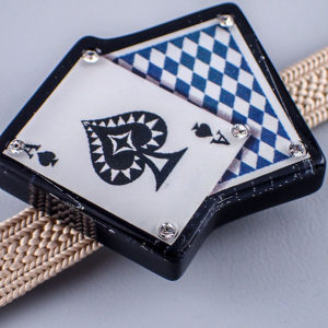トランプちょっと難 商品番号:WKE-573 トランプちょっと難 トランプちょっと難 在庫状態:SOLD OUT ¥815(税込) この商品に関するお問い合わせ ふちの黒地の所に透明フィルムの線や、気泡が見えています。よっぽど近くで見ないとわかりません。 素材:ポリエステル樹脂・スワロフスキー・帯留金具 サイズ:39×33mm 関連商品 FourSeasonオリジナル釦 トランプ(スペード)¥733(税込)トランプの帯留(スペード)¥1,991(税込)トランプの帯留(ハート)¥1,991(税込)