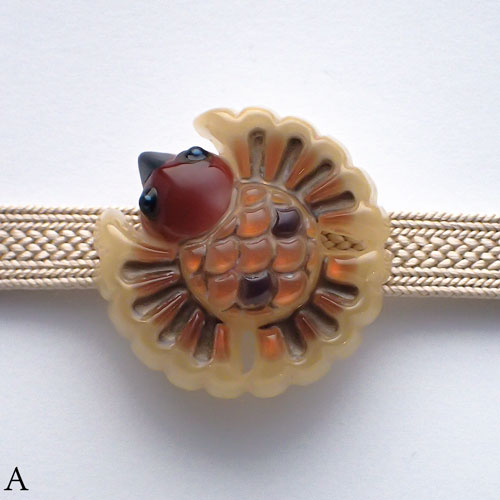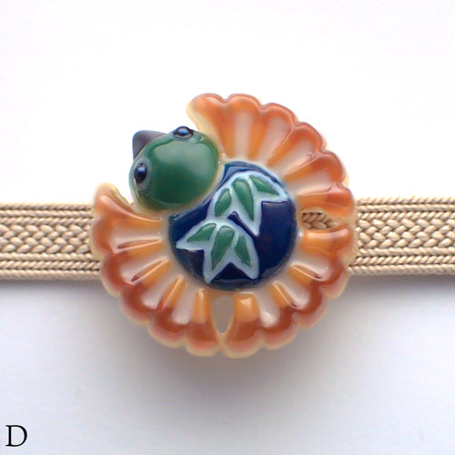 福良雀の帯留めの色を試作する段階で生まれたお色違い4点です。難はありません。通常商品と、色の組み合わせが色々違いますが、こちらの方がお好みという方は是非どうぞ。